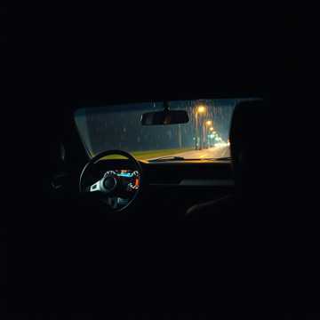 Leather seats and shadows, fingers on the wheel